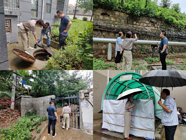 排查各小区安全隐患,检查防汛工作准备情况 7月12日、13日,正能物业公司副总经理王潇龙、陈晨连续两天驻扎在物业一线,检查指导防汛工作,特别针对存在滑坡风险的宝桥小区、中铁一局三公司小区,地势较低容易出现淤堵、倒灌情况的宝光小区、热电小区进行专项指导,要求各小区要严格落实24小时值班制,安排防汛安全员进行定时定点巡查,对排水井、电梯底坑、排水管网进行全面安全隐患排查,对存在安全隐患的区域划分警戒区域,同时强调各岗位员工在思想上要高度重视,坚决克服麻痹侥幸思想,牢固树立“防大汛”意识,始终保持各片区信息网络畅通,确保安全渡过汛期。