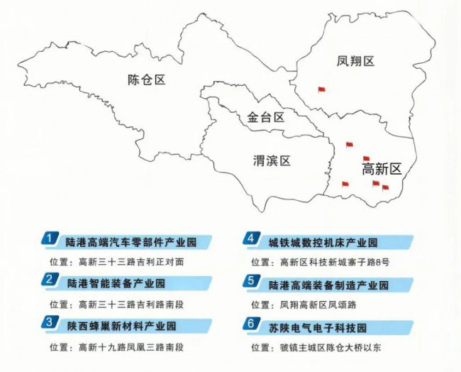 为满足市场需求、承接更多企业入驻,宝鸡工发陆港投资发展有限公司投建设城铁城数控机床产业园,位于吉利东侧,紧邻陕西航天时代导航设备有限公司,一方面继续为吉利、陕汽、比亚迪等汽车企业做好配套,对下游配套企业做好引领,另一方面旨在将外地更多的客商吸引到宝鸡来,整体规划、多方合力、互利共赢,最大限度让利于客商,实现产业集群发展。