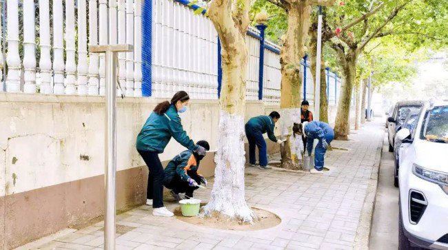 随着冬季的脚步,气温逐渐下降,热电项目抢抓晴好天气,陆续对辖区所有树木开展刷白工作,为树木披上一层崭新的“保暖衣”。树木刷白现场,工作人员齐心协力,配合默契,带着桶、石灰、刷子等工具对已修剪完毕的树木进行涂刷,重点对树皮缝隙、洞孔、树杈等处统一高度,细致均匀涂抹。毛刷在大家手里上下左右移动,一棵棵树木在大家的齐动手中穿上了防虫杀菌的“防护服”,形成了一道别致的风景。