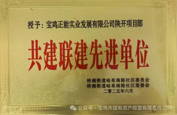 2025年上半年,宝鸡国资正能实业发展有限公司坚持以党建为引领,紧密配合社区工作,努力当好群众的“贴心管家”,不断提升服务质量,荣获多项属地表彰,展现了企业高度的社会责任感和卓越的服务水平。 烟厂项目获评“优秀物业公司” 近日,烟厂项目被东风路街道西社区评为“优秀物业公司”。这一荣誉的获得是对项目团队长期以来高标准、精细化服务的充分肯定。在公司领导的悉心指导和项目全体员工的共同努力下,烟厂项目始终以业主需求为核心,优化管理流程,提升服务品质,赢得了社区和业主的一致认可。未来,项目团队将继续保持优良作风,再接再厉,为业主创造更加安全、舒适、和谐的居住环境。